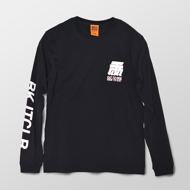 フロントに馬鹿舌倶楽部の『馬』のタイプフェイスを抜き出し、「食べる為に走り、走る為に食べる」のスローガンを配置。 右腕には省略英文字のBKJTCLBを配置しており、様々な乗り物を運転する際に目立つようにデザインしてあります。 背面にはお馴染みの、オリジナルタイプフェイスでの馬鹿舌倶楽部を配置。 ボディは肉厚の7.1ozを使用していますので、ざっくりとした着心地となります。 高密度織りのオレンジネームタグが行き過ぎた文化への警鐘を視覚化しています。